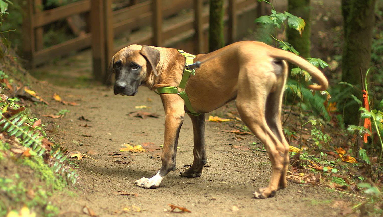 Hiking through the nature preserve near his new home, Pocket must be thinking, “who knew being a dog could be so much fun?” Photo credit: Martyn Stewart